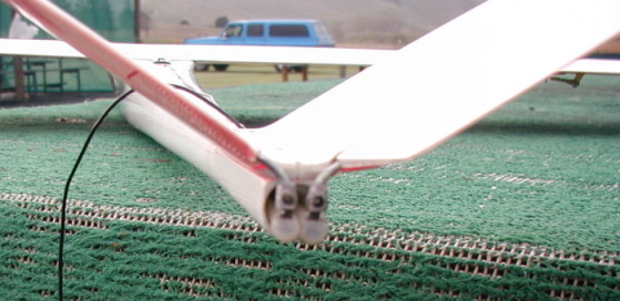 .080" carbon fiber rods at both ends. The aft end of both versions